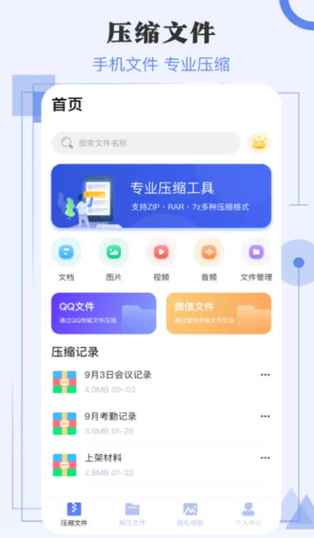 《解压》能够对文件进行压缩、格式转换和存储,使得手机存储空间无论有多大都不再成为问题。当你需要解压图片和视频文件,减少空间占用时,《解压》app能够提供帮助。你还可以通过这款软件重新解压文件,当需要时再次使用。为了防止文件丢失,该软件提供记录功能,你可以在历史记录中查看已处理过的文件。