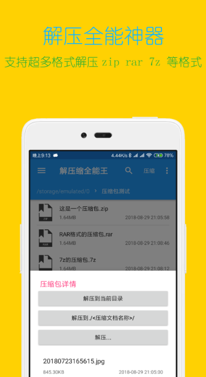 《解压缩全能王》具有极快的压缩速度,只需几秒钟就能将大量的图片压缩成小体积的文件,让用户能够快速完成工作。该软件支持多种格式的图片进行压缩,并且在解压缩时用户也可以选择使用它。无论是压缩还是解压缩后,图片仍然保持原有的高清质量,不会产生失真。