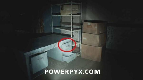 位于办公室。在同一个区域,走到接待柜台后方,沿着小路走到后方,打开蓝色抽屉获得。