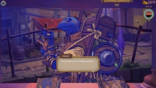 去年年底的1.3版本大型更新,也是针对游戏的经营模拟部分进行了大型补充,几乎将游戏的内容量翻了一倍。比如在这个版本里,出现了声望系统,玩家在卖货的时候,在“挣钱-人情”之间有更多思考空间;玩家也可以把一些压仓的东西交给人气NPC多诺瓦尔(Donoval),他将作为你的代理人在全国行商。小哥布林依旧足不出户,但是过一段时间,就能听到归来的,多诺瓦尔会给你讲述他在游历中遇到的趣事。颇有种“旅行青(蜥)蛙(蜴)”的乐趣在里面。